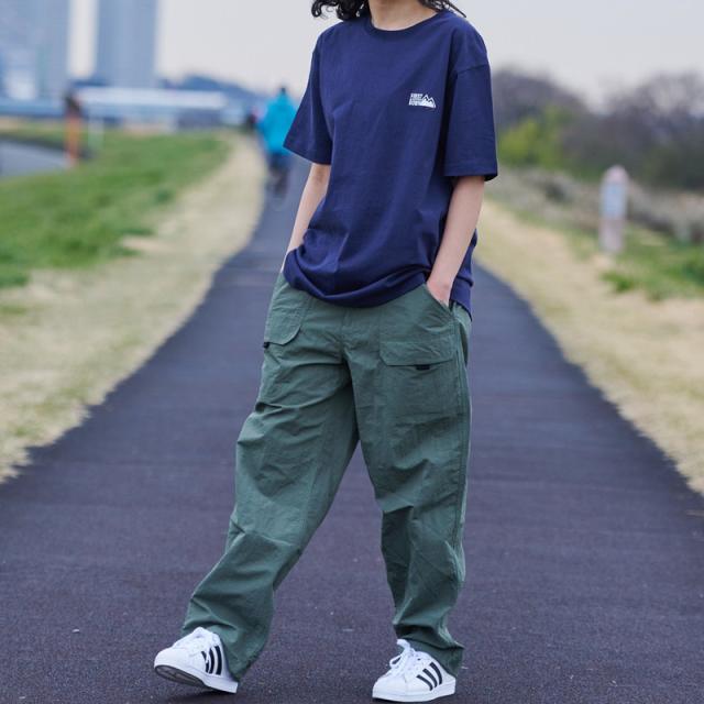 モデル/Lサイズ着用(183cm) ショートパンツやカーゴパンツと合わせてラフなスタイルにはもちろん、柄ボトムと合わせてファッショナブルなスタイルにもおススメ。
