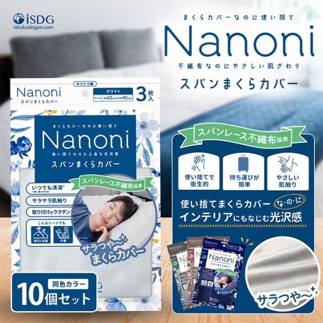 Nanoni スパンまくらカバー / 災害グッズ 災害時 防災グッズ 防災用品 災害対策 光沢感 使い捨て 旅行 便利アイテム 肌荒れ防止 清潔 上品 おしゃれ 不織布 衛生的 持ち運び便利 インテリア 出張 介護