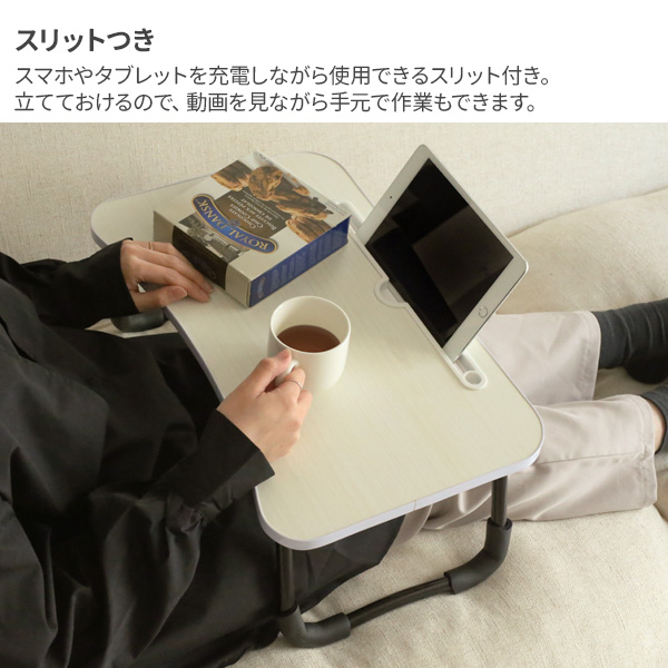 ローテーブル Sサイズ CW-162 選べるカラー | 折りたたみ 机 ベッドテーブル ベッドトレイ 作業テーブル 読書テーブル サイドテーブル リモート スマホ ベッド ソファ ノートPC タブレット 補助テーブル 一人暮らし スリットつき