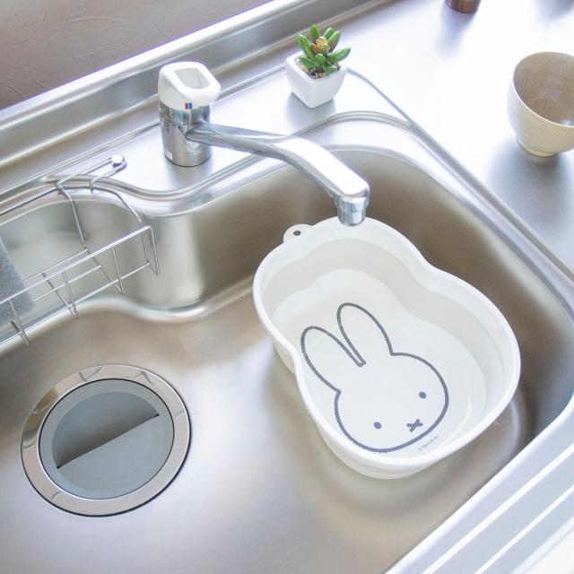 ミッフィーのお顔の形にダイカットされた折りたたみ桶です。少量の食器やふきんなどの手洗いにピッタリ。シンクにすっぽり収まるコンパクトなサイズ感なので、使用時も収納時も場所を取らず省スペースで使うことができます。可愛いミッフィーの絵柄で面倒な洗い物も楽しくなりそうです。