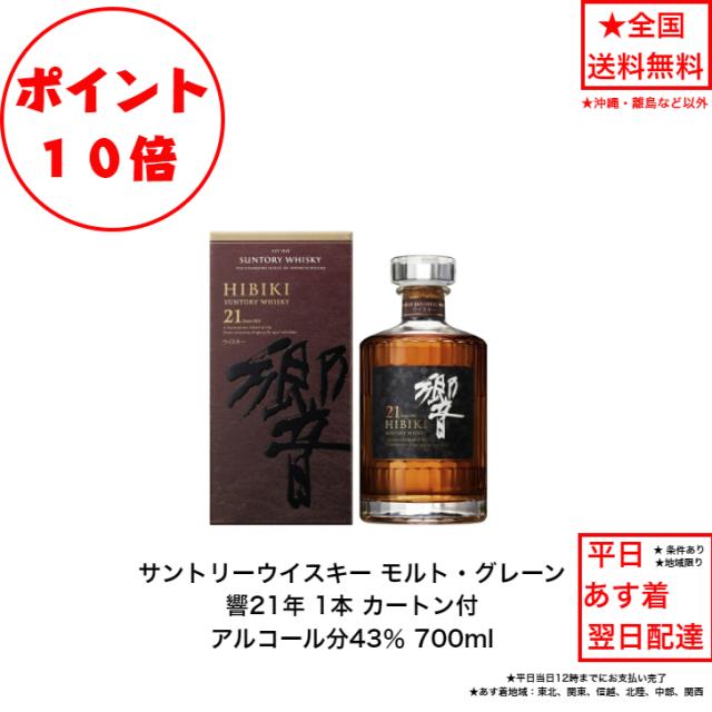 ポイント10倍!サントリーウイスキー 響21年 カートン付 1本 内容量700ml アルコール分43% ブレンデッドウイスキー ジャパニーズウイスキー 国産ウイスキー 贈答品 プレミアム品 お酒 礼品 大人プレゼント 希少 入手難 送料無料 女子会 飲み会