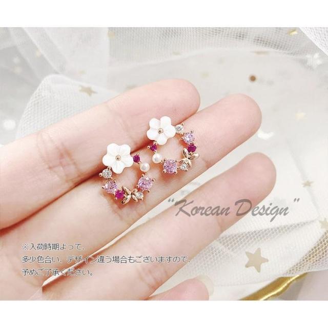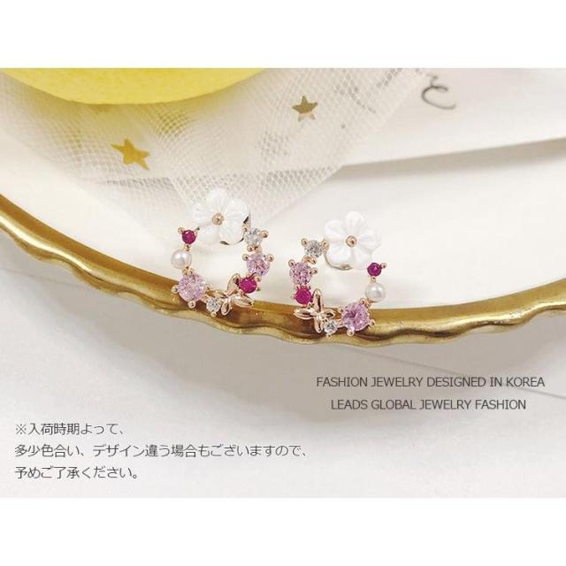 ピアス レディース イヤリング 18金 アレルギー対応 桜の花 ピンクゴールド スワロフスキー ジルコニア採用 大人 可愛い