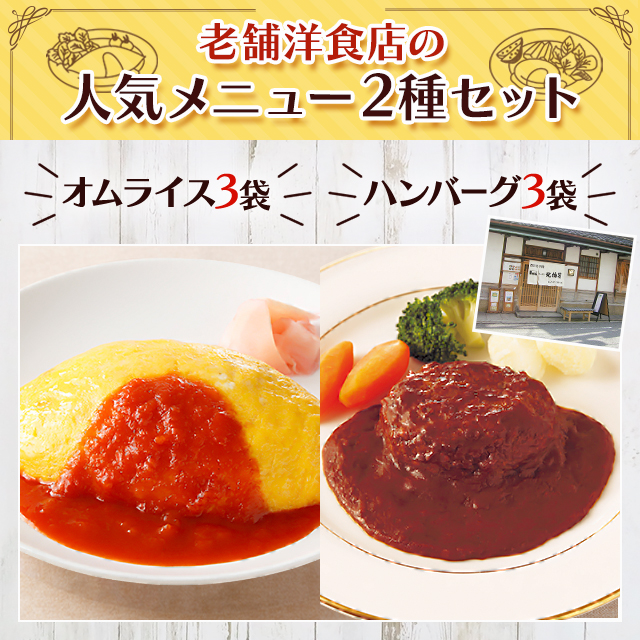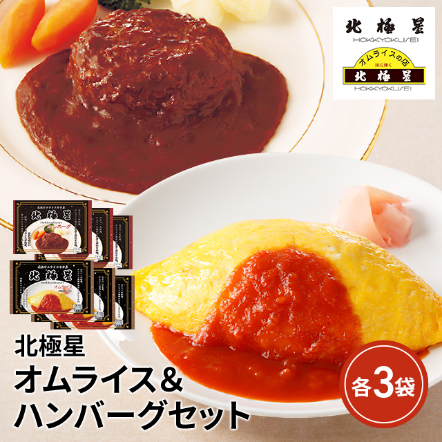 送料込み 北極星 オムライス & ハンバーグ セット 各3袋 冷凍 惣菜 大阪 冷凍食品