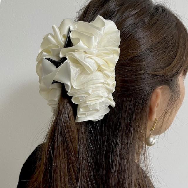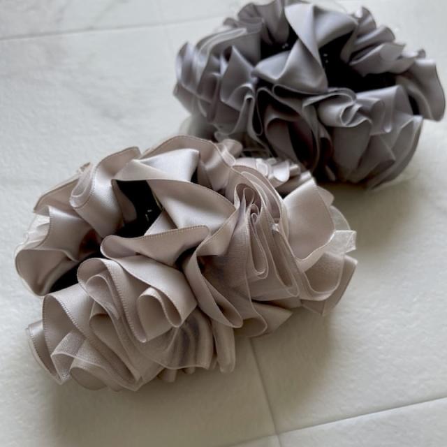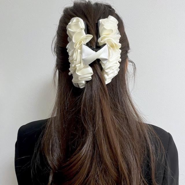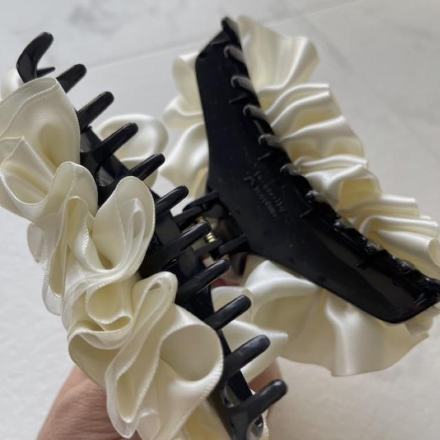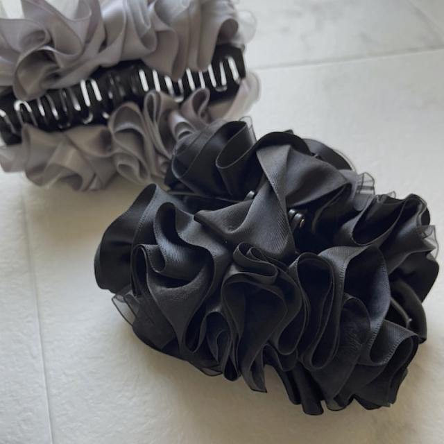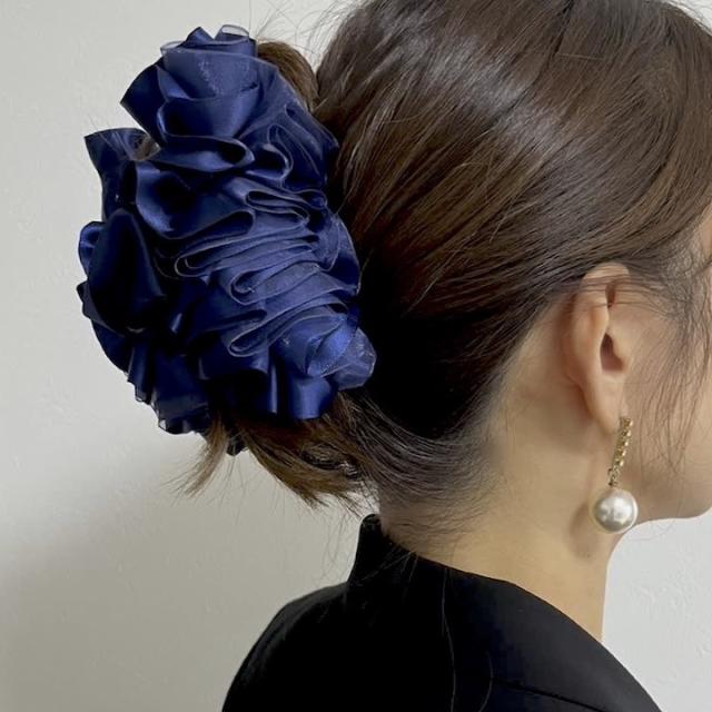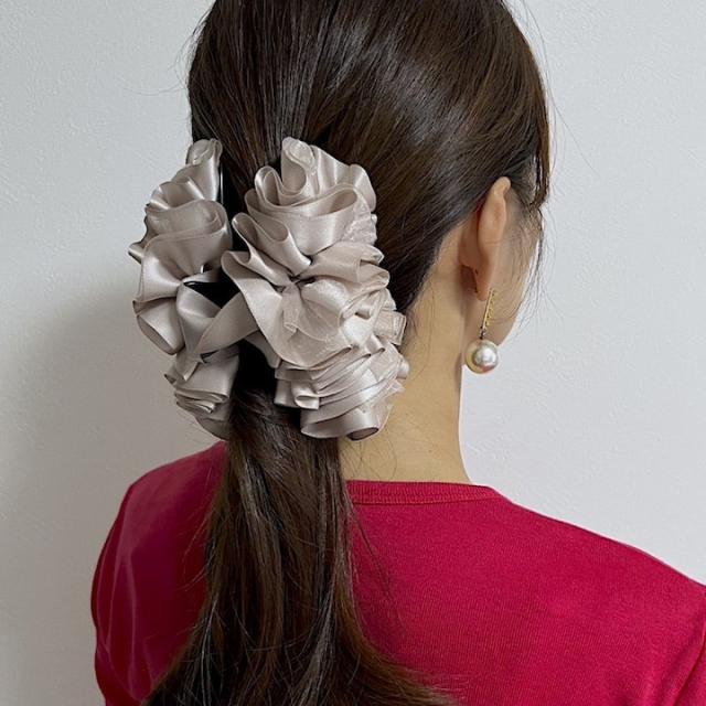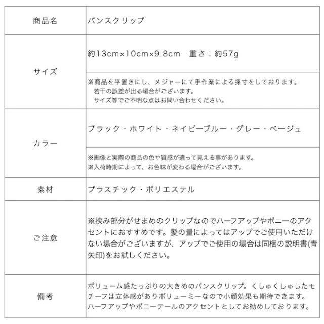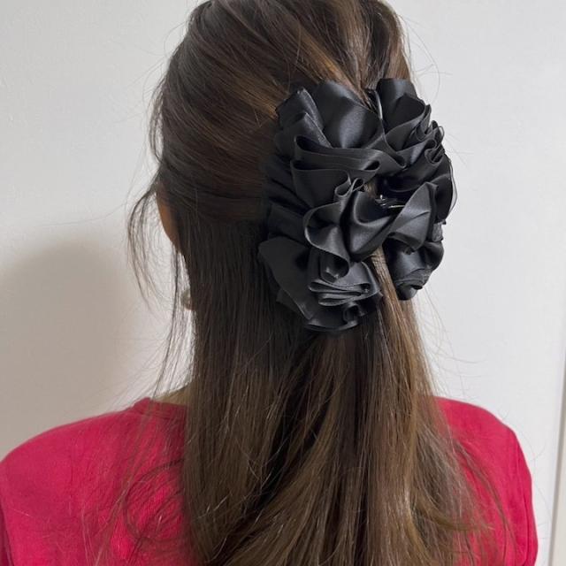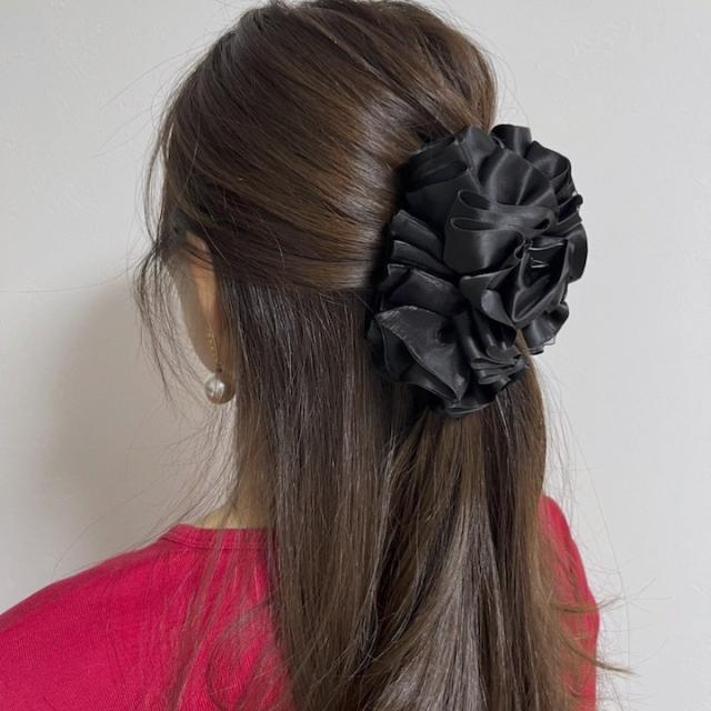 ボリューム感たっぷりの大きめのバンスクリップ。くしゅくしゅしたモチーフは立体感がありボリューミーなので小顔効果も期待できます。