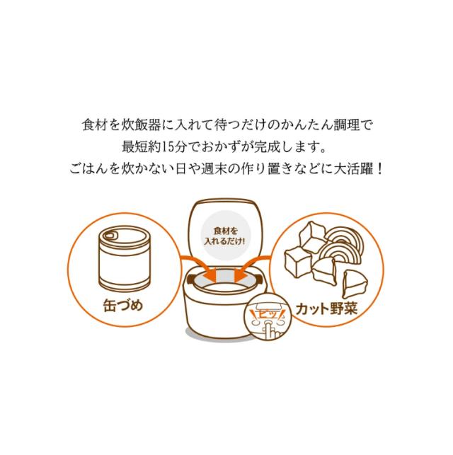 食材を炊飯器に入れて待つだけのかんたん調理で最短約15分でおかずが完成します。