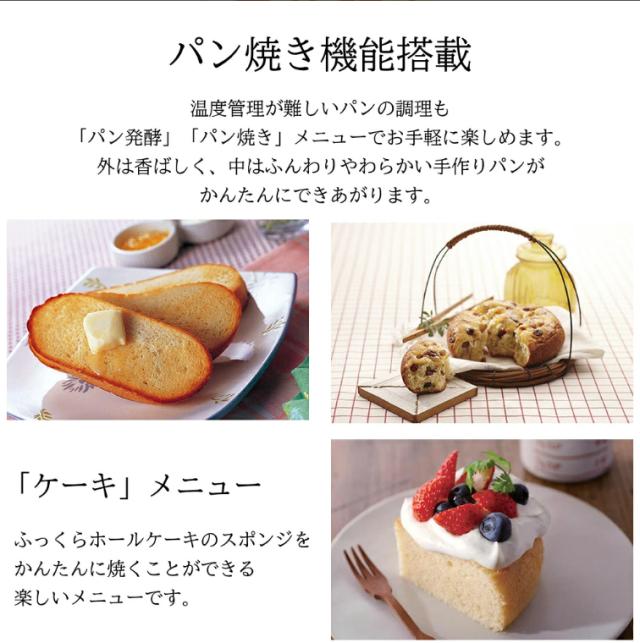 温度管理が難しいパンの調理も「パン発酵」「パン焼き」メニューでお手軽に楽しめます。