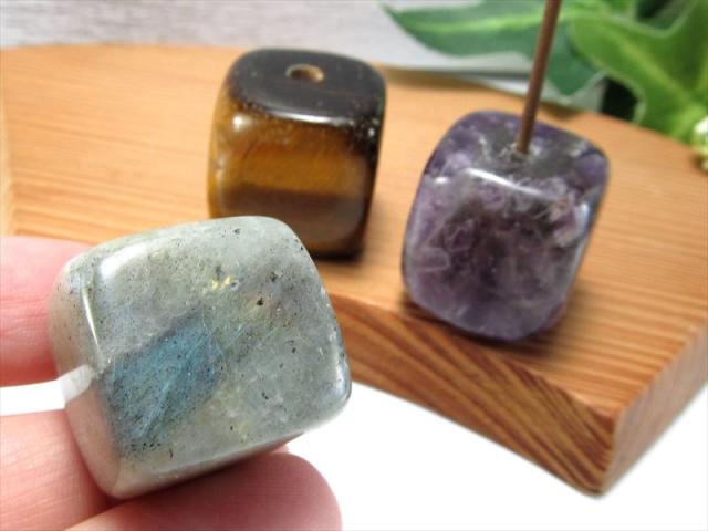 選べる5種 天然石 四角丸四角形 お香立て 1個売り 穴径約1.5mm-2mm ぷりっとツヤ感 インテリアにも 天然水晶 アメジスト ローズクォーツ ラブラドライト タイガーアイ inmy パワーストーン 天然石