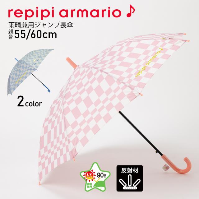 傘 晴雨兼用傘 長傘 子供 キッズ repipiarmario レピピアルマリオ ブランド チェッカージャンプ傘 女の子 可愛い かわいい おしゃれ グラスファイバー骨 通園 通学 入園 入学 送料無料 10002439
