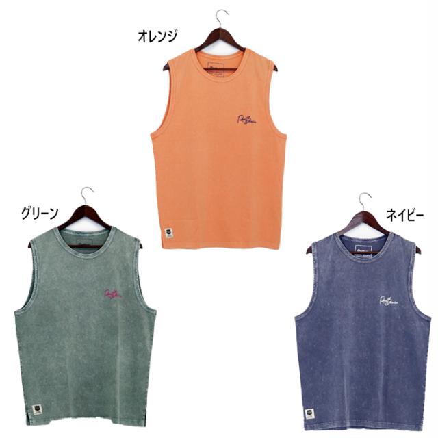 リアルビーボイス メンズ ライド ウィズ タイド ピグメント スリーブレス ノースリーブ トップス タンクトップ カジュアル ストリート ネイビー オレンジ グリーン 緑 送料無料 RealBvoice 10451-11849
