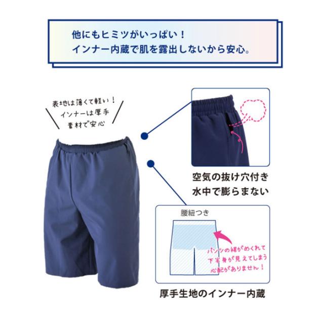 パンツの内側はインナーパンツ付きなので安心感があります。また左右に抜け穴を付け、水中で膨らみにくくしています。