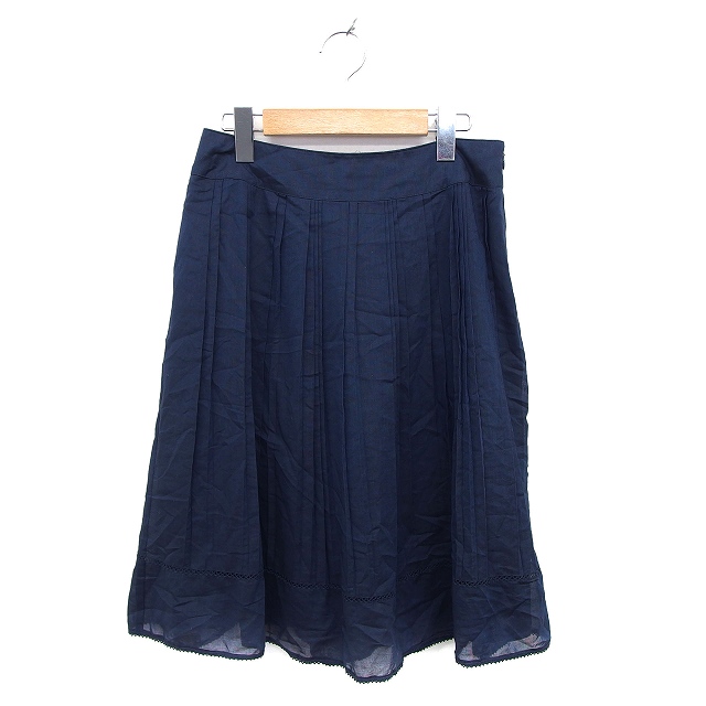 【中古】自由区 オンワード樫山 スカート フレア ひざ丈 ひざ下 透け感 レース タック サイドジップ 38 紺 ネイビー