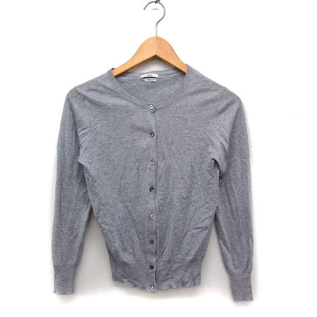 【中古】イエナ IENA ニット カーディガン 丸首 無地 コットン 綿 グレー 灰 /FT28 レディース