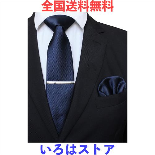 [JEMYGINS] [ジェミギンズ] 無地 紺色 ネイビーブルー シルクネクタイ チーフ セット ビジネス スーツ ォーマル ネクタイ タイピン ハン