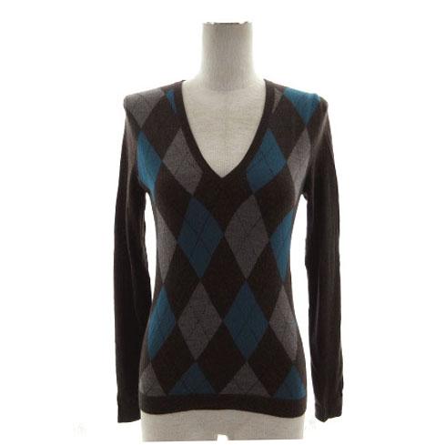 【中古】スピック&スパン フレームワーク ニット セーター Vネック イタリア製生地 アーガイル 茶 ブルー系 グレー