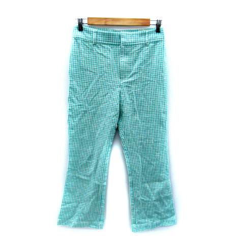 【中古】ザラ ZARA フレアパンツ アンクル丈 ギンガムチェック柄 M 水色 ライトブルー 白 ホワイト /SY28 レディース