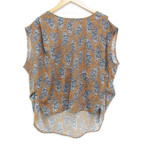 【中古】エニィファム ブラウス カットソー フレンチスリーブ ボートネック ペイズリー柄 F 茶 白 レディース
