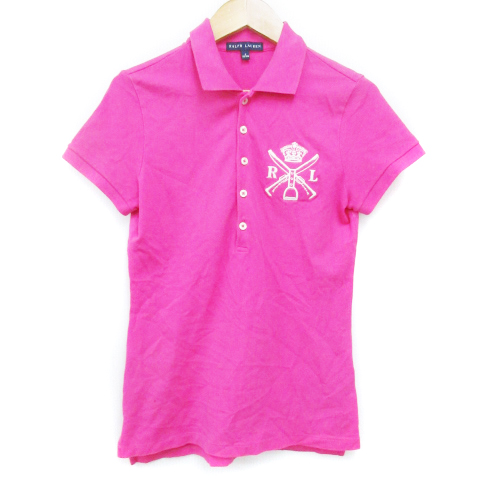 【中古】ラルフローレン RALPH LAUREN ポロシャツ 半袖 ポロカラー ロゴ刺? S ピンク /FF28 レディース