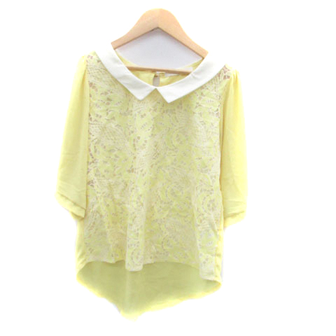 【中古】ミスティウーマン mysty woman ブラウス カットソー 七分袖 レース 切替 M 黄色 イエロー レディース