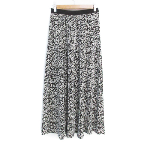 【中古】ロペピクニック フレアスカート ロング丈 マキシ丈 総柄 38 白 黒 ホワイト ブラック /FF47 ■MO レディース
