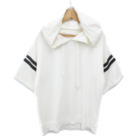 【中古】ムルーア パーカー プルオーバー 薄手 五分袖 ライン 透け感 F 白 黒 ホワイト ブラック /FF22 レディース