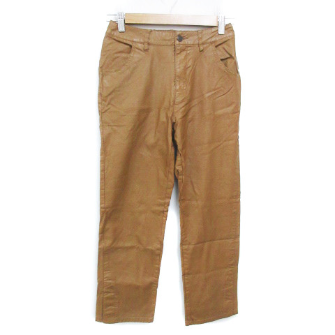 【中古】ベイフロー フェイクレザーパンツ テーパードパンツ アンクル丈 スリット 3 茶 ブラウン /FF15 レディース