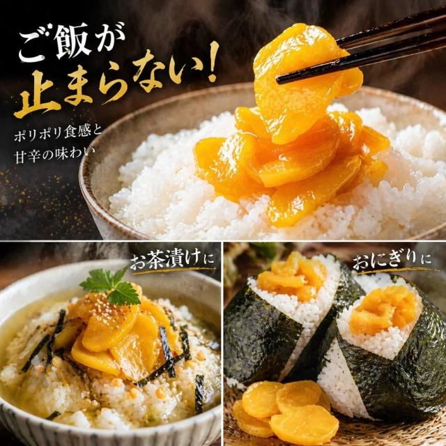 ・旬の大根を寒風で干し上げ、甘口の醤油でじっくり丁寧に漬け込んだつぼ漬けです。