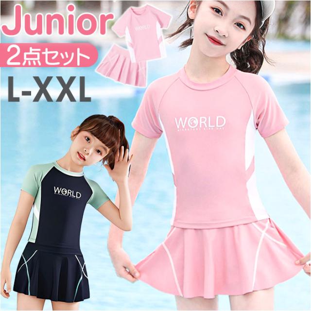 子供 水着 女の子 ジュニア 通販 セパレート 半袖 スカート 上下 水泳着 日焼け防止 速乾性 かわいい 可愛い キッズ ガールズ 女子 おしゃれ オシャレ スイムウェア 水遊び 夏