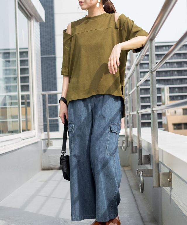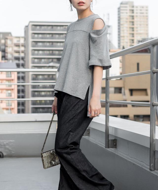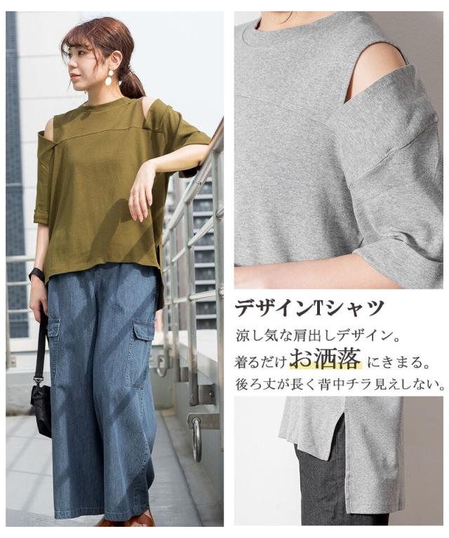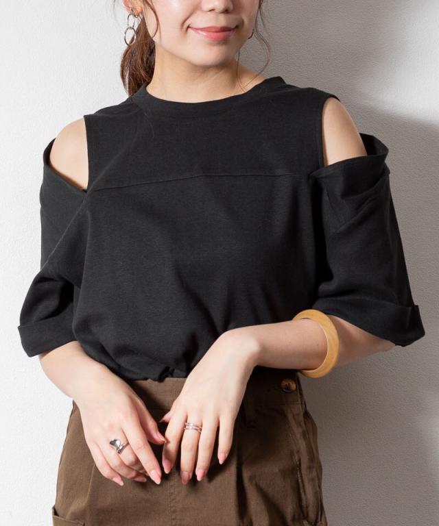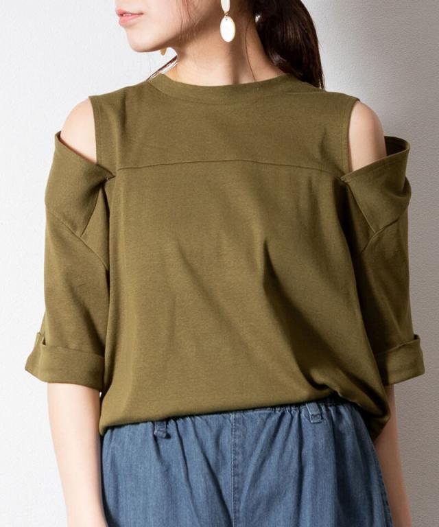 ショルダーオープン半袖Tシャツ