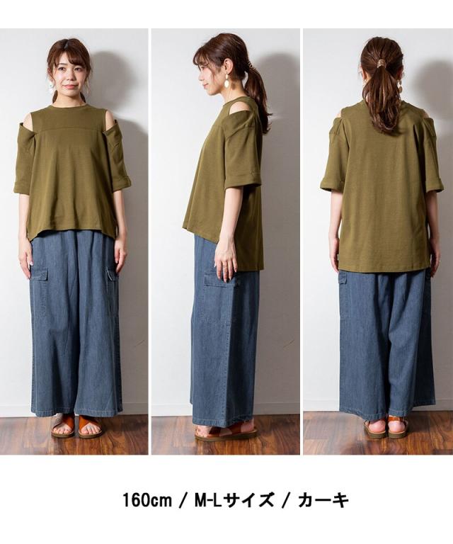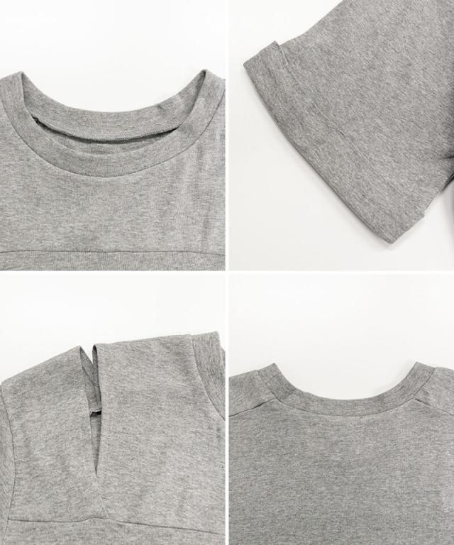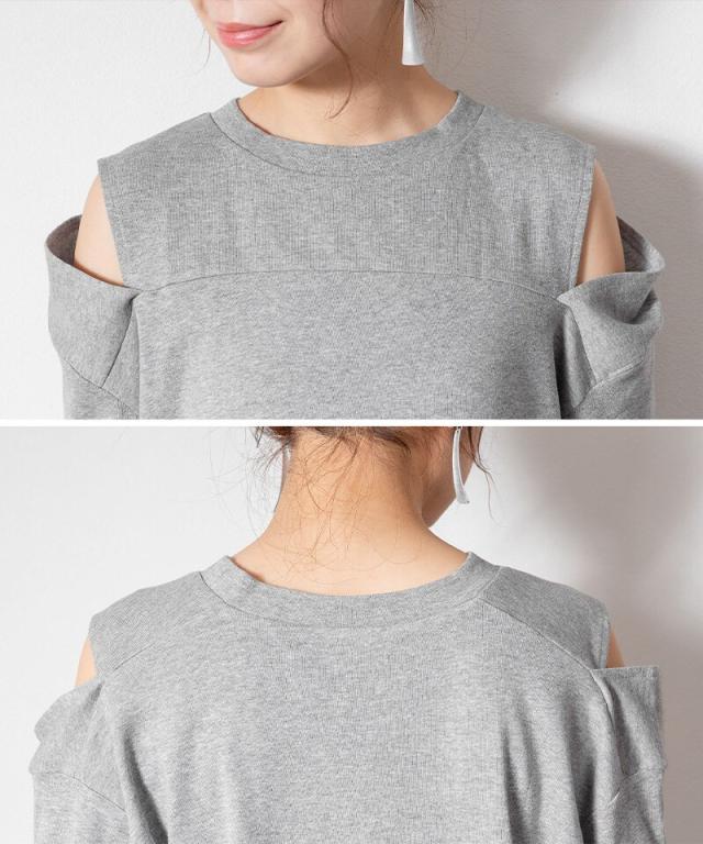 肩の部分が開いており、オシャレで大人っぽい印象を与えます。半袖なので、春から夏にかけて活躍するアイテムです。