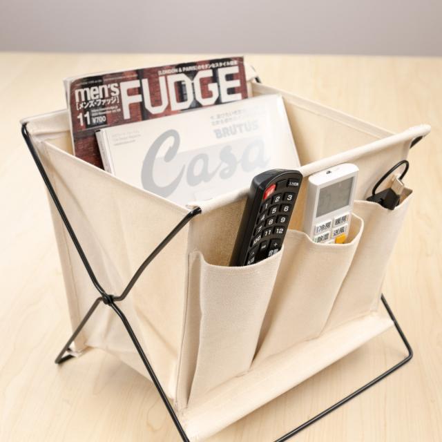 シンプルな色味とデザイン、ポケット付きマガジンラック