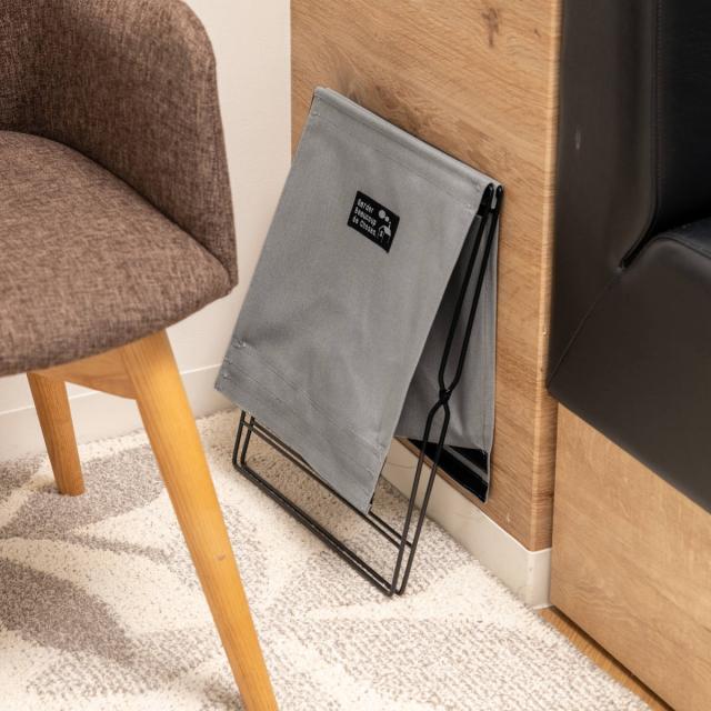 来客用の手荷物、自立しないPCバッグ、ビジネスバッグの置き場所として重宝します。底と床にすき間があるので直置きにならず、かばんをホコリから守ります。