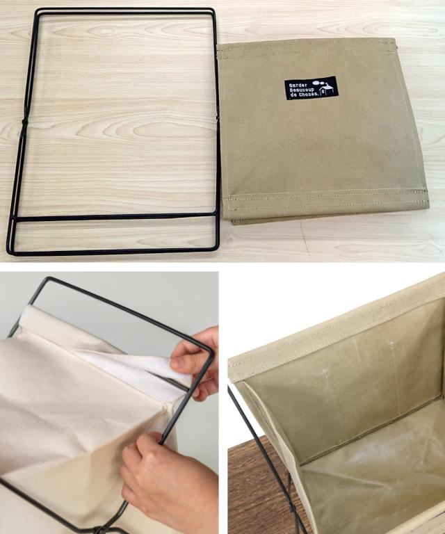 フレームにバッグをかぶせるだけで簡単に組み立てられます。中に砂やゴミが溜まったら、取り外してお手入れできます。内側はPEコーティング加工が施されているため、汚れても拭き取りやすいです。