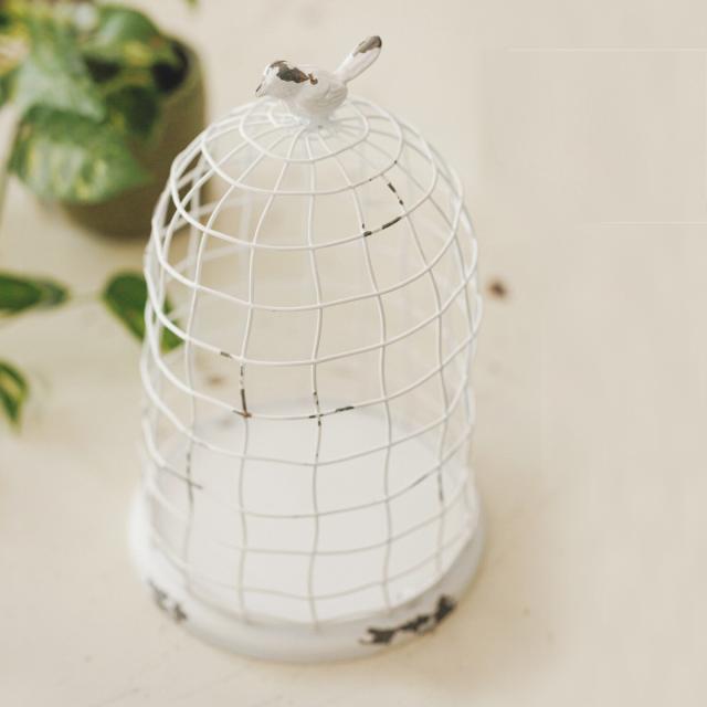 アンティーク調デザインの鳥かご風プランター Lサイズです。植物と相性ピッタリで落ち着きのあるホワイトカラーです。なにも入れずにそのまま飾っても、アンティーク風な空間を演出してくれます。