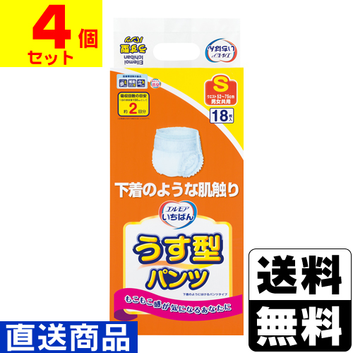 ■直送■エルモアいちばん うす型パンツ Sサイズ 18枚入【1ケース(4個入)】同梱不可キャンセル不可[送料無料]