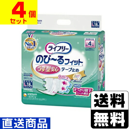 ■直送■[ユニチャーム]ライフリー のびーるフィットうす型安心テープ Lサイズ 18枚【1ケース(4個入)】同梱不可キャンセル不可[送料無料]