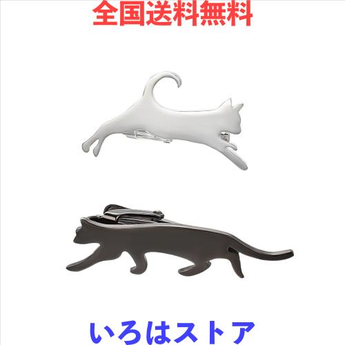 ◆商品名:Yoursfs ネクタイピン 猫 セット 2本 ブラック シルバー かわいい ねこ ネクタイピン おしゃれ おもしろ ユニーク ネクタイ ピン ブラン