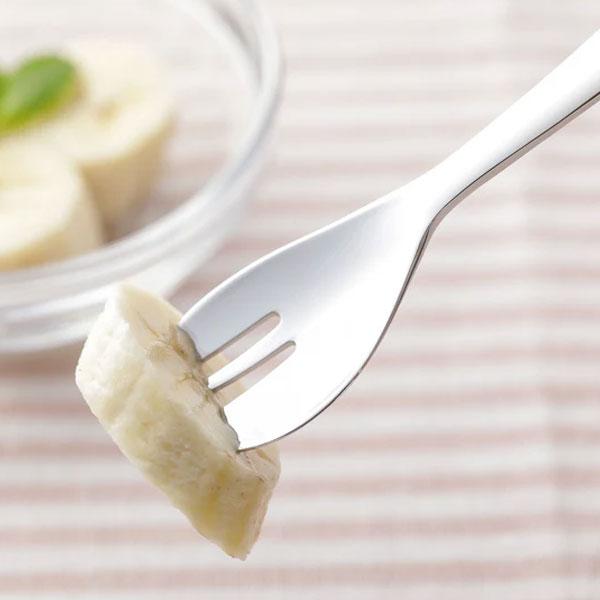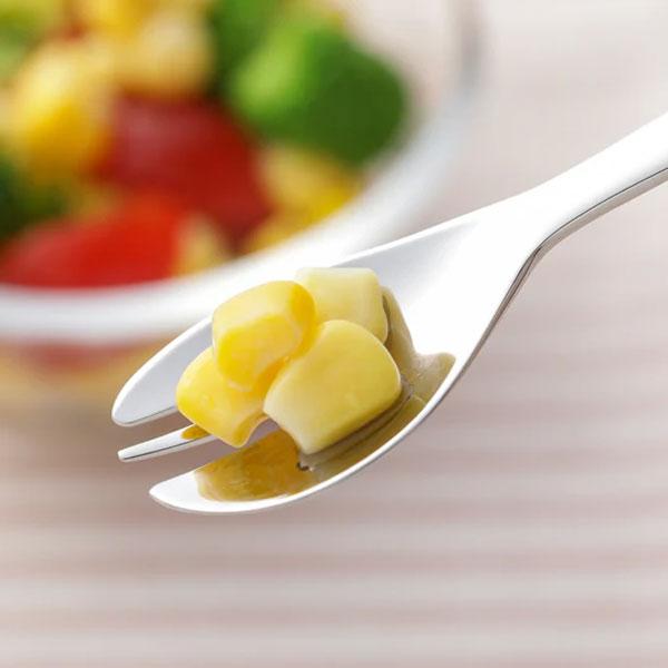 カットフォーク幼児用は離乳食を卒業し固形物を食べ始めたお子様が、簡単に扱えるようデザインされています。