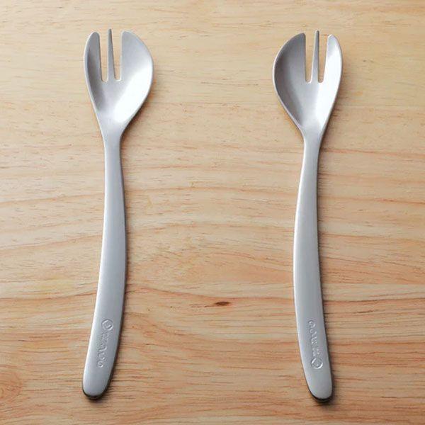 カットフォーク幼児用は「刺す」ことだけではなく、「すくう・切リ分ける」ことも行いやすくしたフォークです。