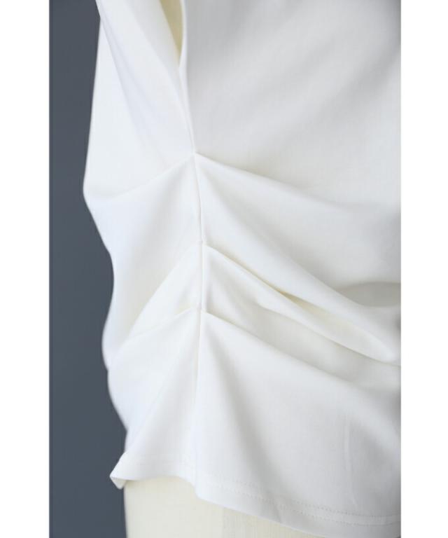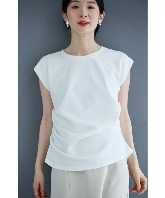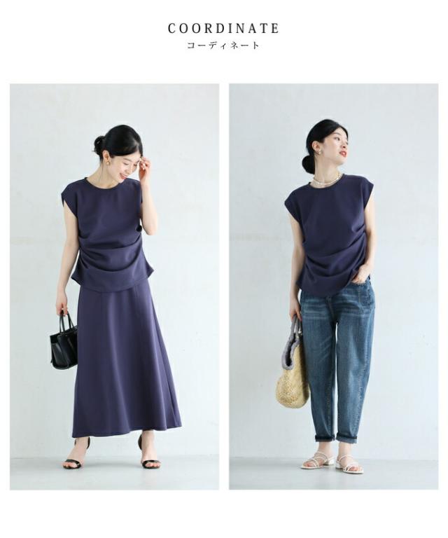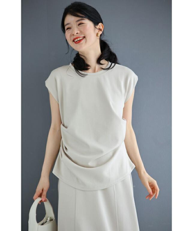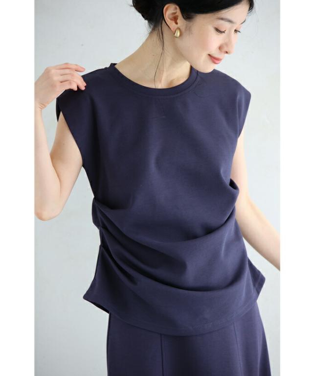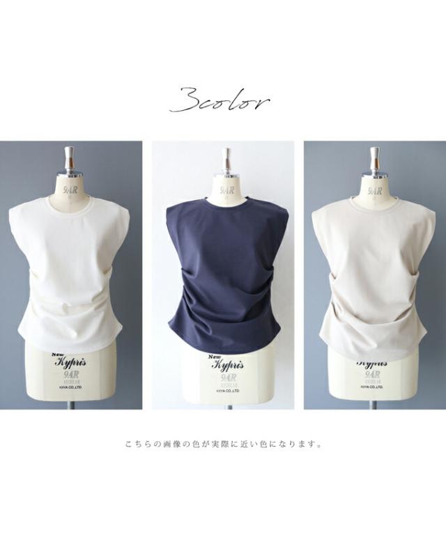 再入荷5月24日 アシンメトリーなドレープタックのカットソートップス トップス カットソー レディース ファッション 春服 夏服 着回し ノースリーブ 体型カバー cawaii w60603ps S~L対応 ホワイト ライトベージュ ネイビー 日常使い キレイめ シンプル ミセス 30代 40代 50代