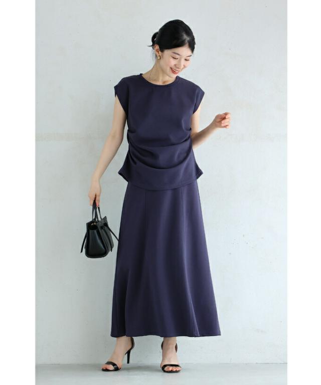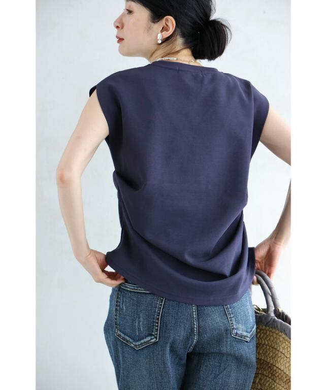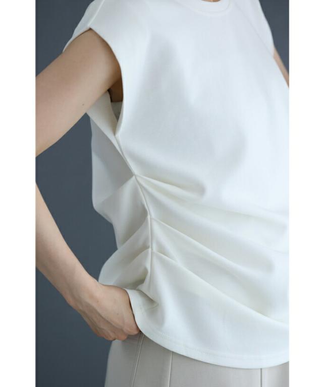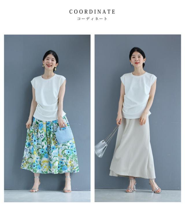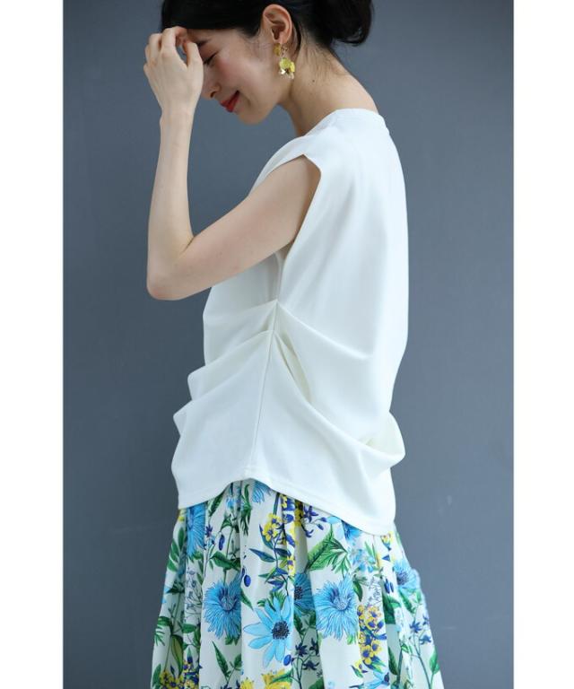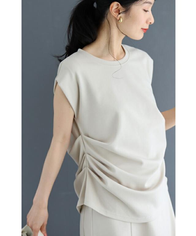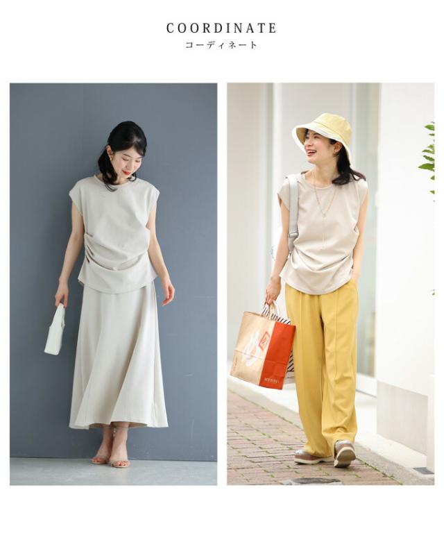 再入荷5月24日 アシンメトリーなドレープタックのカットソートップス トップス カットソー レディース ファッション 春服 夏服 着回し ノースリーブ 体型カバー cawaii w60603ps S~L対応 ホワイト ライトベージュ ネイビー 日常使い キレイめ シンプル ミセス 30代 40代 50代