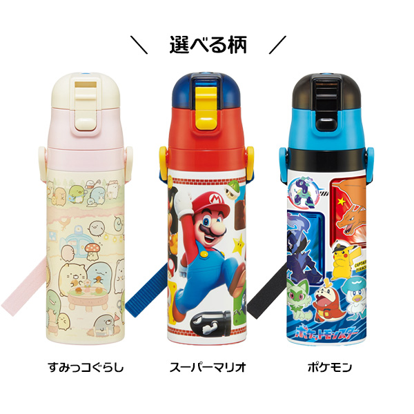 水筒 キッズ 超軽量ダイレクトボトル 470ml すみっコぐらし/スーパーマリオ/ポケモン | スケーター 子供用 直飲み 保冷専用 ステンレス製 こども ロック機能 ショルダーベルト付き 氷 入れやすい かわいい 超軽量 女の子 男の子 軽い