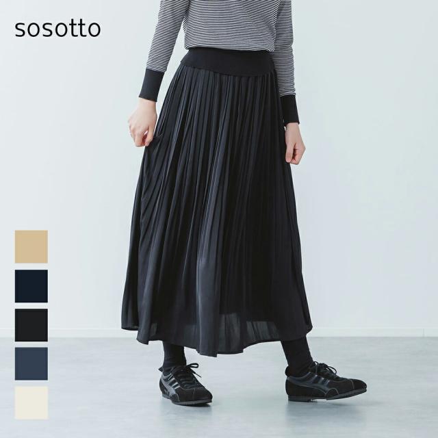【2026春夏】ソソット sosotto アンティークサテン 消しプリーツスカート ロングスカート ウエストゴム 無地 裏地付き フレア カジュアル きれいめ ゆったり オフィス レディース 2026SS ts1031