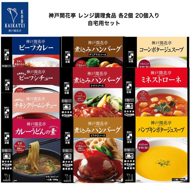 レトルト食品 詰め合わせ カレー ハンバーグ シチュー スープ (コーンポタージュ ミネストローネ パンプキンポタージュ) カレーうどんの素 10種20個 レトルト 惣菜 おかず まとめ買い セット 神戸開花亭 常温保存 のし・包装不可 送料無料 福袋 ポイント消化