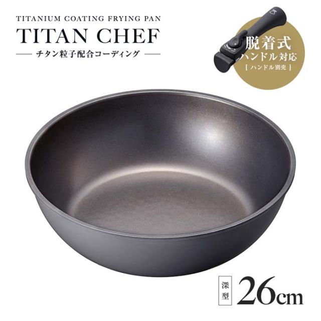 チタンシェフ脱着ハンドル式フライパン 26cm深型 1010053 持ち手が外れる 焦げにくい 料理上手 重ねられる 煮込み 煮物 カレー ※ハンドル別売