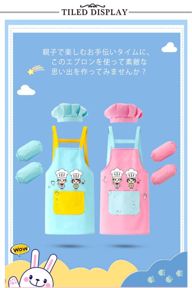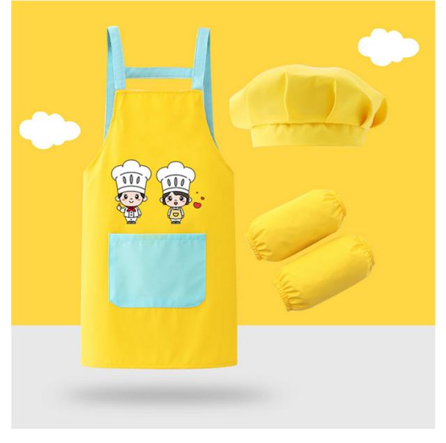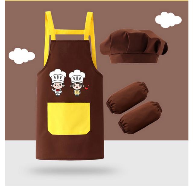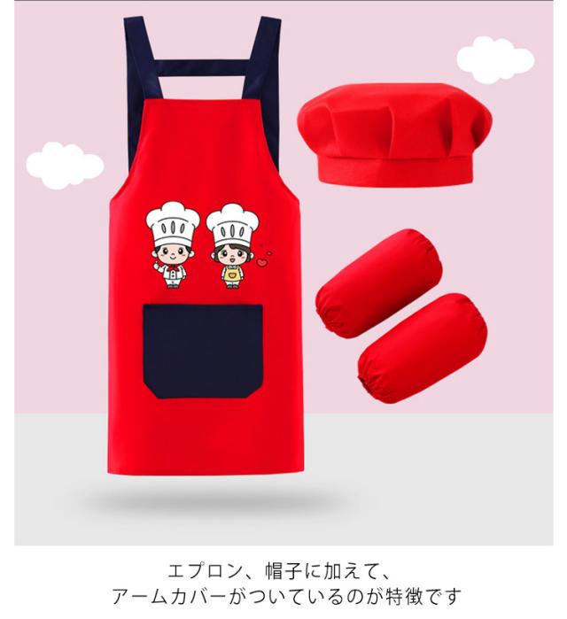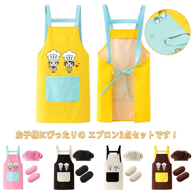 キッズ 子供 エプロン 3点セット 防水 帽子 アームカバー DIY 男の子 女の子 男女兼用 小学生 調理実習 ワークエプロン ユニセックス おしゃれ 料理教室 学校 クッキング 保育園 幼稚園 小学校 入学準備