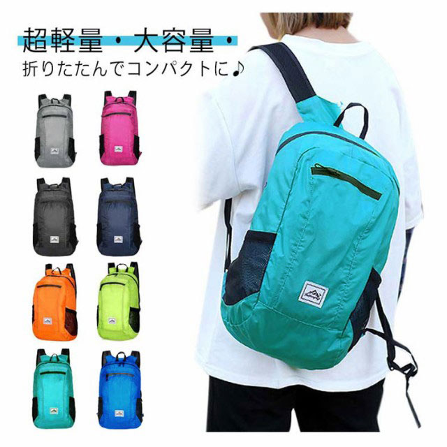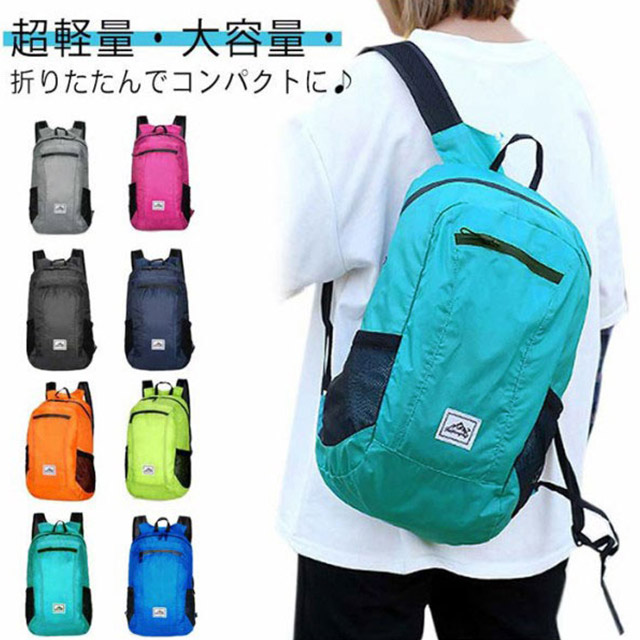 20L 大容量 折りたたみ リュックサック バックパック 折り畳みリュック マイバック サブバッグ 防水 撥水 超軽量 多収納 旅行 サイクリング 登山 A4サイズ収納可 トラベルバック ランニング リュック バッグ ジョギング ハイキング