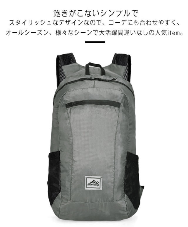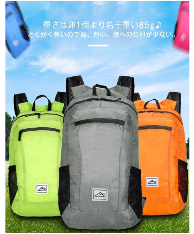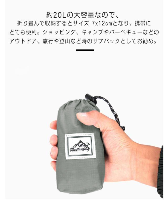 | 超軽量・大容量・折りたたんでコンパクトに♪ 重さは卵1個より若干重い85g♪とくかく軽いので肩、背中、腰への負担が少ない。 防水ナイロンを採用し、耐摩耗性、引き裂きなどに強く、耐久性に優れ、急な雨や雪でも中身が濡れずに安心。(※完全防水仕様ではありません) メインポケット、フロントポケット、サイドポケットなど多収納あり、お弁当やペットボトル、折りたたみ傘などスッキリ収められるから、アウトドアアクティビティに最適。 約20Lの大容量なので、折り畳んで収納するとサイズ 7x12cmとなり、携帯にとても便利。ショッピング、キャンプやバーベキューなどのアウトドア、旅行や登山など時のサブバックとしてお勧め。 飽きがこないシンプルでスタイリッシュなデザインなので、コーデにも合わせやすく、オールシーズン、様々なシーンで大活躍間違いなしの人気item。 | |