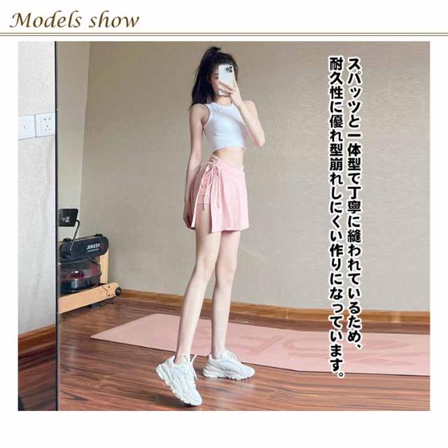 スポーツウェア スカート インナーパンツ付き レディース テニス ゴルフ ランニング フィットネス ヨガウェア レイヤード 重ね着 速乾 運動着 体型カバー 体育祭 ウェア 大きいサイズ ウエストゴム 軽い 卓球 ジム ヨガ バトミントン