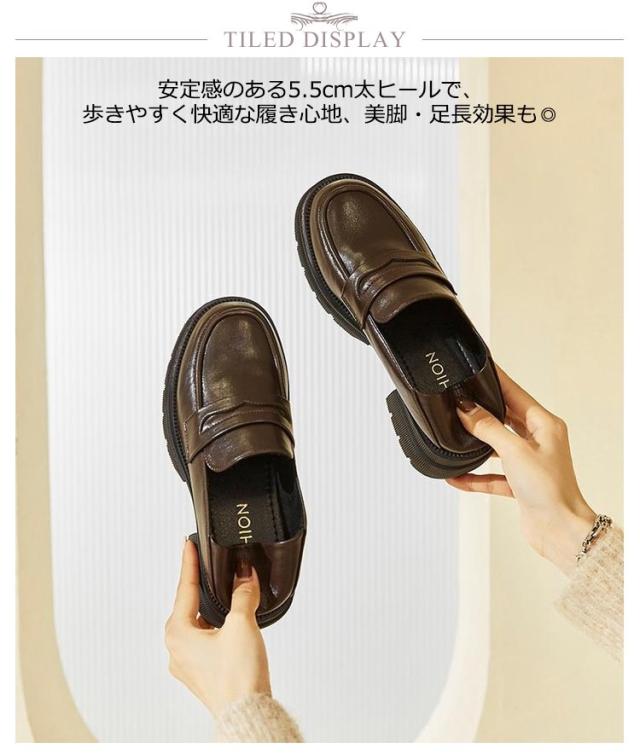 靴 厚底 ローファー レディース 茶色 黒 ブラック かかとが踏める靴 かかとが踏めるスリッポン レディース サボ 靴 シューズ レディース 歩きやすい 太ヒール 美脚 春 秋冬 シンプル フォーマル PUレザー 滑り止め 5.5cm 脚長効果 通学 通勤 大人 母の日 プレゼント