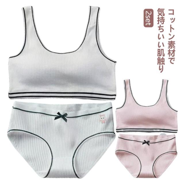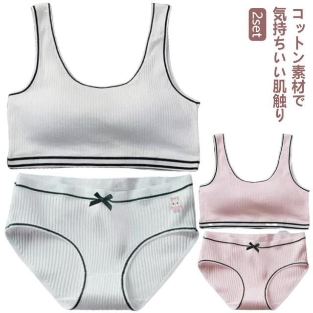 ジュニアブラ ジュニア下着 パンツ 中学生 レディース ショーツ ブラジャー ガールズ ジュニア 下着 女子 リブ ジュニア下着セット 2点セット 2set セット インナー 女の子 ショーツ 上下 パッド付き 送料無料 カップ付き 大人 女の子 ブラジャー リブ